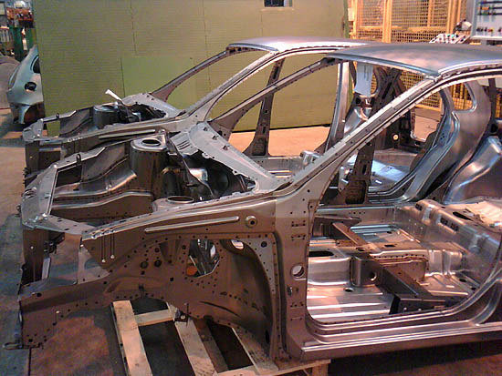Излишки материала удаляются с готовых штамповок с помощью компьютеризированной лазерной обрезной машины, которая продается за 1,2 миллиона долларов. После выполнения любых других операций по гибке и перфорации детали готовы для сварки в готовое тело.