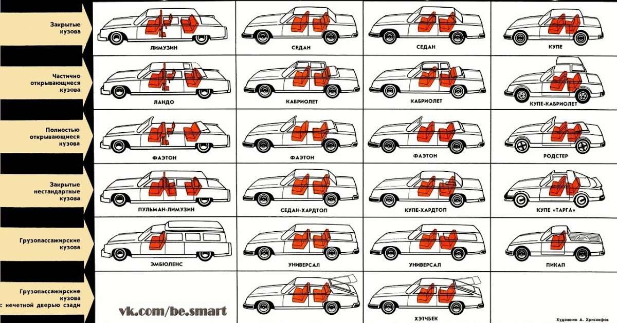 - Укажите различные типы кузовов и объясните любые два.(2016)