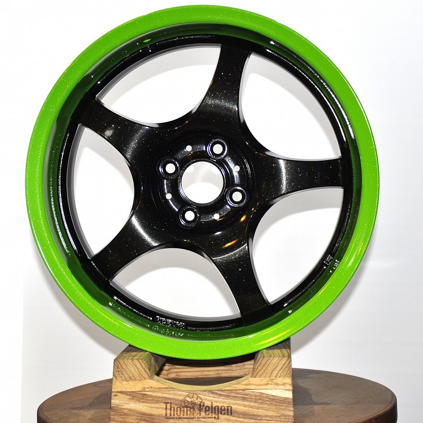 После нанесения деталь подвергают воздействию высокой температуры в специальной камере, где краска, оплавляясь, закрепляется на дисках. По сравнению с акриловыми материалами порошковая краска менее устойчива по отношению к механическим и химическим воздействиям. Однако этот вариант покраски часто предпочитают в силу быстрого нанесения и сравнительно экономного расхода. Порошковые материалы лучше всего подходят для обновления литых легкосплавных дисков.