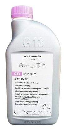 G13. В данной жидкости используется пропиленгликоль, а не этиленгликоль. Такое вещество разлагается более быстро и содержит меньшее количество токсичных соединений, поэтому может быть более безопасным для экологии.