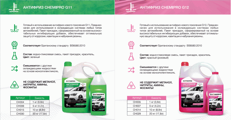 Antifreeze G11 отличается от G12 как по цвету, так и по составу.Этиленгликоль синего цвета, а карбоксилат — еще одно химическое вещество красного цвета, не содержащее силикатов. В каждой стране есть свои национальные стандарты, обычно они уже устарели. Сегодня нет единого стандарта, которому бы соответствовали все антифризы.