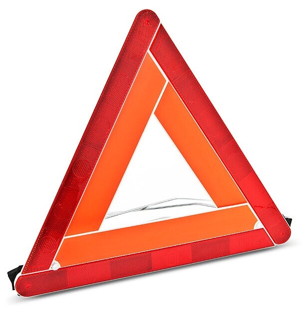 Он представляет собой треугольник красного цвета со светоотражающими элементами, внутри которого расположен оранжевый или желтый треугольник. Ни красный мигающий фонарь, как иногда подсовывают в задачах по ПДД, ни солдатский сапог, вытащенный из канавы и обвязанный красной тряпочкой, ни баклажка из-под «омывалки» не могут заменить предупредительный сигнал, необходимый по Правилам.
