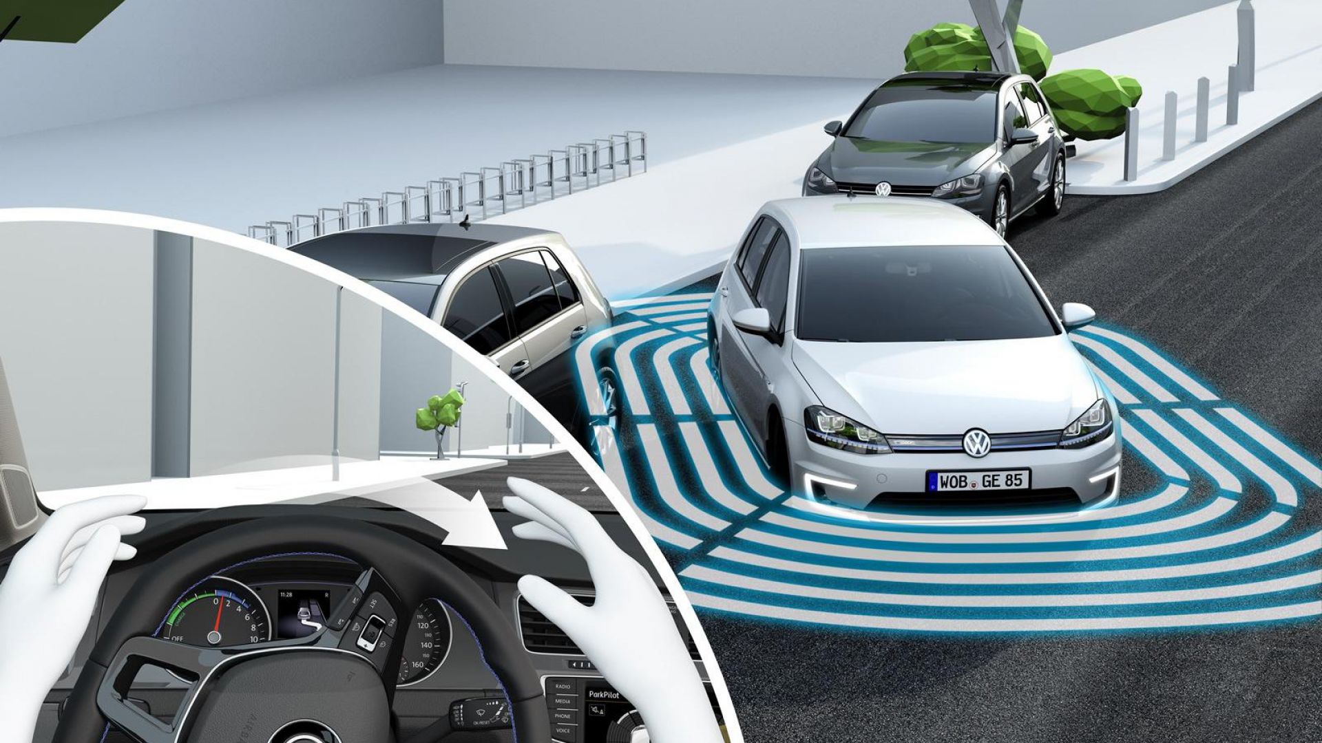 Видео о принципе работы автоматической парковки на VW Golf 7