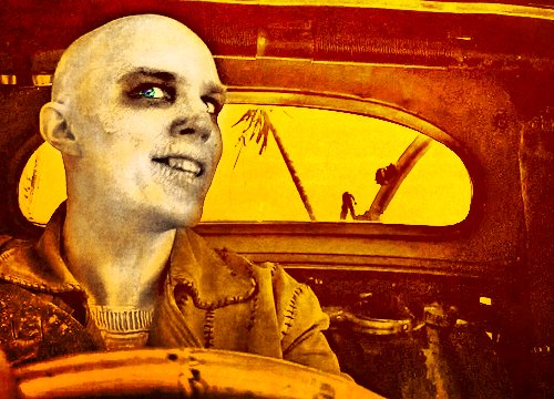 Автор принижает человека, чья уродливая сущность формирует и его изувеченную язвами и нарывами больную и гниющую плоть. Но самый уродливый здесь правитель Иммортан Джо, он лишен лица, а власть его бесплодна в прямом смысле, порождения чресел уродливы и нежизнеспособны. «I live, I die. I LIVE AGAIN!», — кричит зомбированный солдат по имени Накс из воинства уродов, принимая своего царя за бога, не зная жизни иной кроме слепого подчинения.