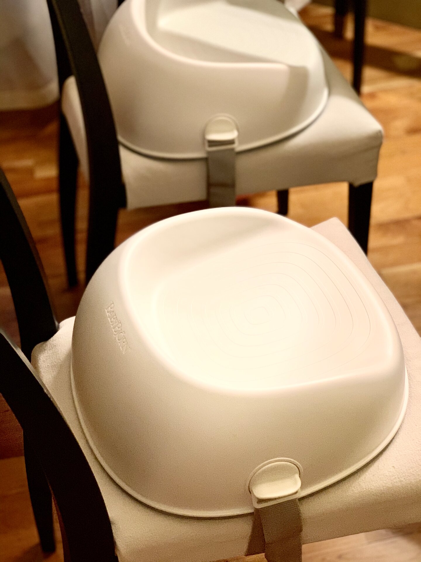 - Space saving — Booster seats take up less space than traditional high chairs and can be pushed around the table when installed on a chair.