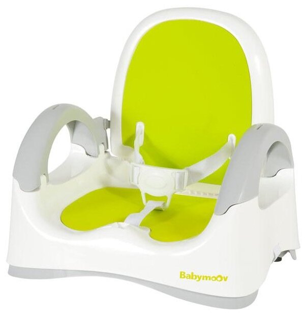 Детское сиденье сидит на стуле и поднимает ребенка на несколько дюймов выше, так что он может находиться на уровне глаз со всеми остальными за столом. Обычно у них есть простой поясной ремень, но ничего подобного 5-точечным ремням, которые можно найти на большинстве стульев для кормления.