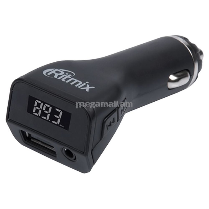 Удобный в эксплуатации и демократичный по цене модулятор от производителя Ritmix. Имеет дисплей компактных размеров. Поддерживает карты памяти форматов SD и microSD, распознаёт флешки, ёмкость которых не превышает 32 ГБ. Оборудование корейской компании позволяет слушать любимые музыкальные композиции и аудиокниги в формате MP3. В комплектации с устройством идёт простенький, но аккуратный пульт дистанционного управления. Диапазон радиочастот находится в границах 87,5-108 МГц.