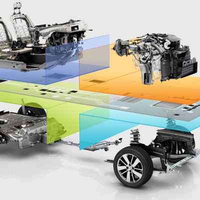 Модульное качество платформы GA-B позволяет использовать ее с транспортными средствами разной длины, высоты и ширины колеи, что дает дизайнерам и инженерам свободу создавать привлекательные новые модели различных размеров и типов кузова.
