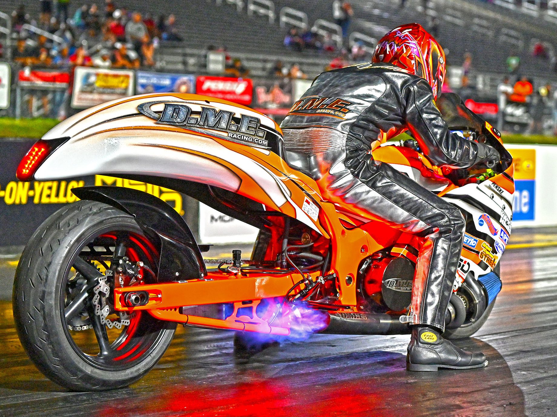 Задние «слики» заметно увеличиваются в диаметре, а их борта под воздействием вращающего момента покрываются складками. Окончательно оценить серьезность аппарата позволяют цифры. Круглые 100 км/ч драгстер набирает за 0,7 секунды, пройдя дистанцию 10 метров – чуть больше своей длины! Через три секунды после старта скорость достигает 300 км/ч и продолжает расти.