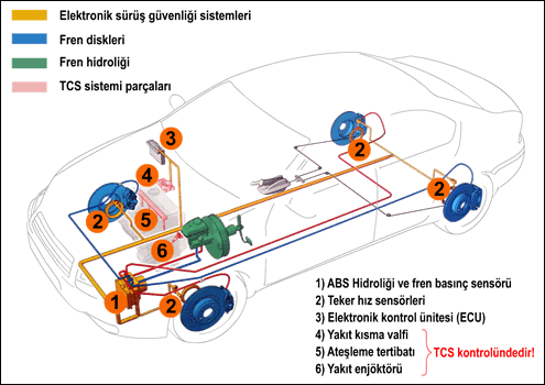 Самая большая особенность TCS — это использование существующего компьютера системы ABS, который определяет выходную скорость и компьютер управления двигателем и трансмиссией, даже если установить запасное колесо, TCS может быть точно применен.