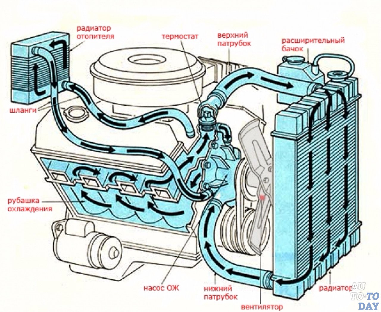 ДВС — это тепловые агрегаты: при сжигании топлива в двигателе образуется тепло, которое преобразуется поршнями и коленвалом в кинетическую энергию. Однако часть энергии отходит в качестве неиспользованного тепла. Избыточное тепло должно отводиться целенаправленно и надежно. ОЖ поглощают большой объем тепловой энергии, быстро транспортируют ее и отдают.