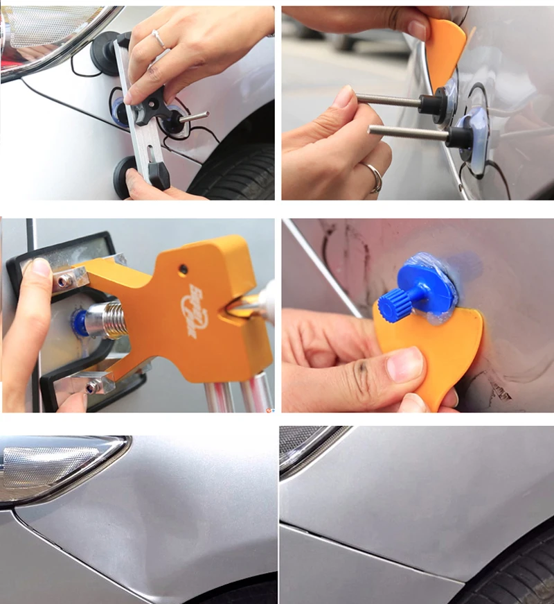 Это делается с помощью вакуумных присосок, которые отличает способ захвата и конструкционная конфигурация. Популярны также крючкообразные приспособления, которые отличаются своими особенностями в действии. Инструменты этих обеих категорий объединяет то, что они обеспечивают предельно щадящее воздействие на лакокрасочную поверхность корпуса и тем самым позволяют снизить цену ремонта. Но вместе с преимуществами у таких неразрушающих методов есть и некоторые недостатки.