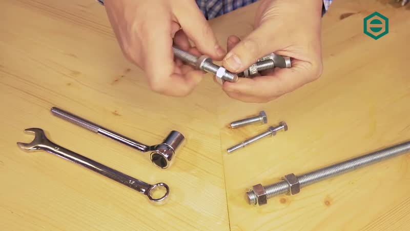 Теми же инструментами можно и затянуть метиз при необходимости. - Поверх горизонтально расположенного метиза надевают с усилием гайку с большим диаметром, а затем откручивают это сооружение инструментом, подходящим под размер верхнего крепежного элемента.