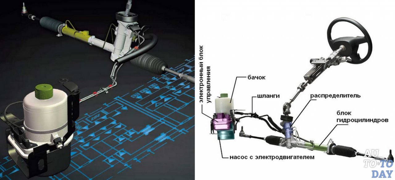 Π΅ΠΌΠ° ΡΠ°Π±ΠΎΡΡ ΠΠ£Π Π²ΡΠ΅Π³Π΄Π° ΡΠ°ΠΊΠΎΠ²Π°, ΡΡΠΎ Π½Π°ΡΠΎΡ ΡΠΎΠ·Π΄Π°Π΅Ρ Π΄Π°Π²Π»Π΅Π½ΠΈΠ΅, ΡΠ°ΡΠΏΡΠ΅Π΄Π΅Π»ΠΈΡΠ΅Π»Ρ Π½Π°ΠΏΡΠ°Π²Π»ΡΠ΅Ρ, Π° Π³ΠΈΠ΄ΡΠΎΡΠΈΠ»ΠΈΠ½Π΄Ρ ΠΏΡΠ΅ΠΎΠ±ΡΠ°Π·ΡΠ΅Ρ Π΅Π³ΠΎ Π² ΡΡΠΈΠ»ΠΈΠ΅ Π΄Π»Ρ ΠΏΠΎΠ²ΠΎΡΠΎΡΠ° ΠΊΠΎΠ»Π΅Ρ. ΠΠΈΠ΄ΡΠΎΡΡΠΈΠ»ΠΈΡΠ΅Π»Ρ ΡΡΠ»Ρ ΡΡΡΡΠΎΠ΅Π½ ΡΠ°ΠΊ, ΡΡΠΎ ΠΏΡΠΈ Π΅Π³ΠΎ ΠΎΡΠΊΠ°Π·Π΅ ΡΡΠ»Π΅Π²ΠΎΠ΅ ΡΠΏΡΠ°Π²Π»Π΅Π½ΠΈΠ΅ Π°Π²ΡΠΎΠΌΠΎΠ±ΠΈΠ»Ρ ΠΏΡΠΎΠ΄ΠΎΠ»ΠΆΠ°Π΅Ρ ΡΠ°Π±ΠΎΡΠ°ΡΡ. Π’ΠΎΠ»ΡΠΊΠΎ Π΄Π»Ρ ΡΠΎΠ³ΠΎ ΡΡΠΎΠ±Ρ ΠΏΠΎΠ²Π΅ΡΠ½ΡΡΡ ΡΡΠ»Ρ, Π½ΡΠΆΠ½ΠΎ ΠΏΡΠΈΠΊΠ»Π°Π΄ΡΠ²Π°ΡΡ Π±ΠΎΠ»ΡΡΠΈΠ΅ ΡΡΠΈΠ»ΠΈΡ.