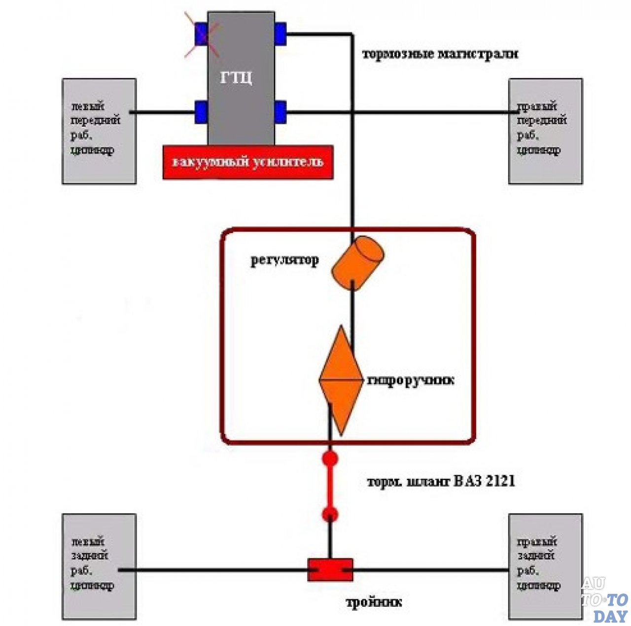 Кароче психанули, тормоза опять заблочились, на склоне, кто был у меня в гараже тот поймет какой там «серпантин», машина не катится. Заезжаю в гараж, глушу на регуляторе в салоне разъем под трубку которая идет от гтц, глушу задний контур в самом гтц, и все.