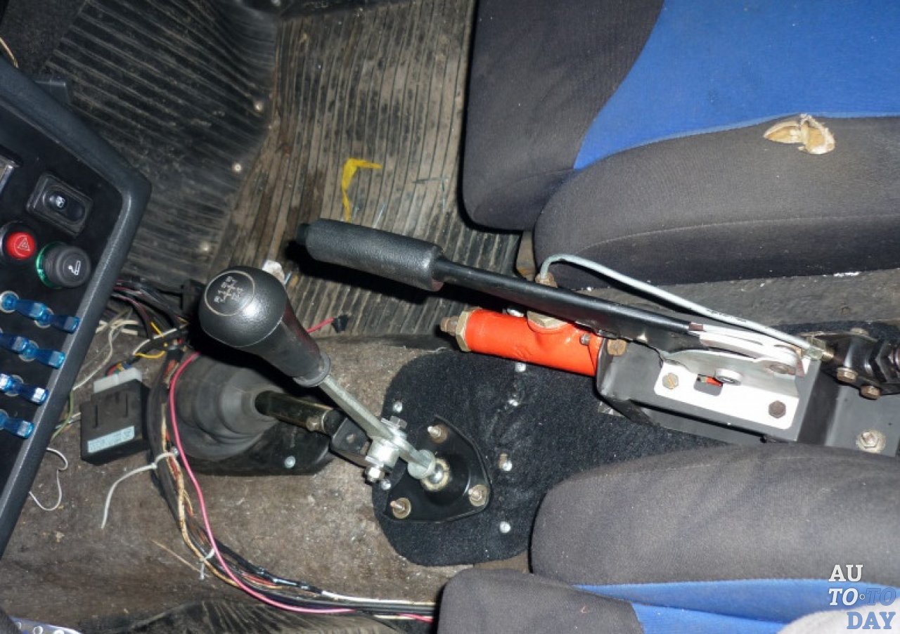 Таким образом получаем гидроручник при полном сохранении штатного тросового ручника. Рукоятка палки немного мешает включать заднюю передачу, но на это просто забиваем )