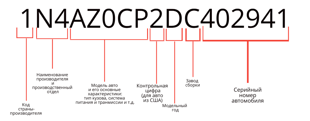 VIN состоит из 17 алфавитно-цифровых символов, однако более старые автомобили имеют 16-значный код. Правила составления VIN могут различаться в зависимости от производителя авто, но существует «классический ключ» для чтения идентификационного номера.