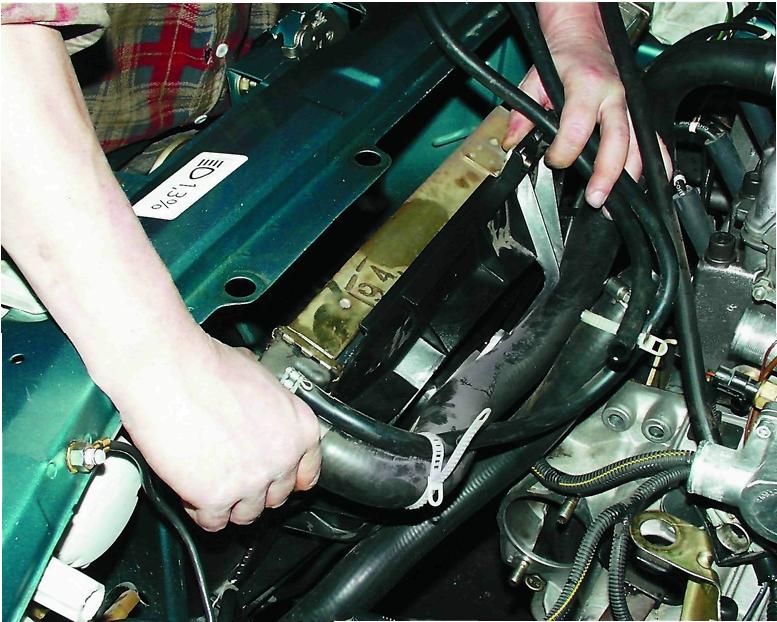 - Ослабляем хомут патрубка и снимаем его со штуцера.