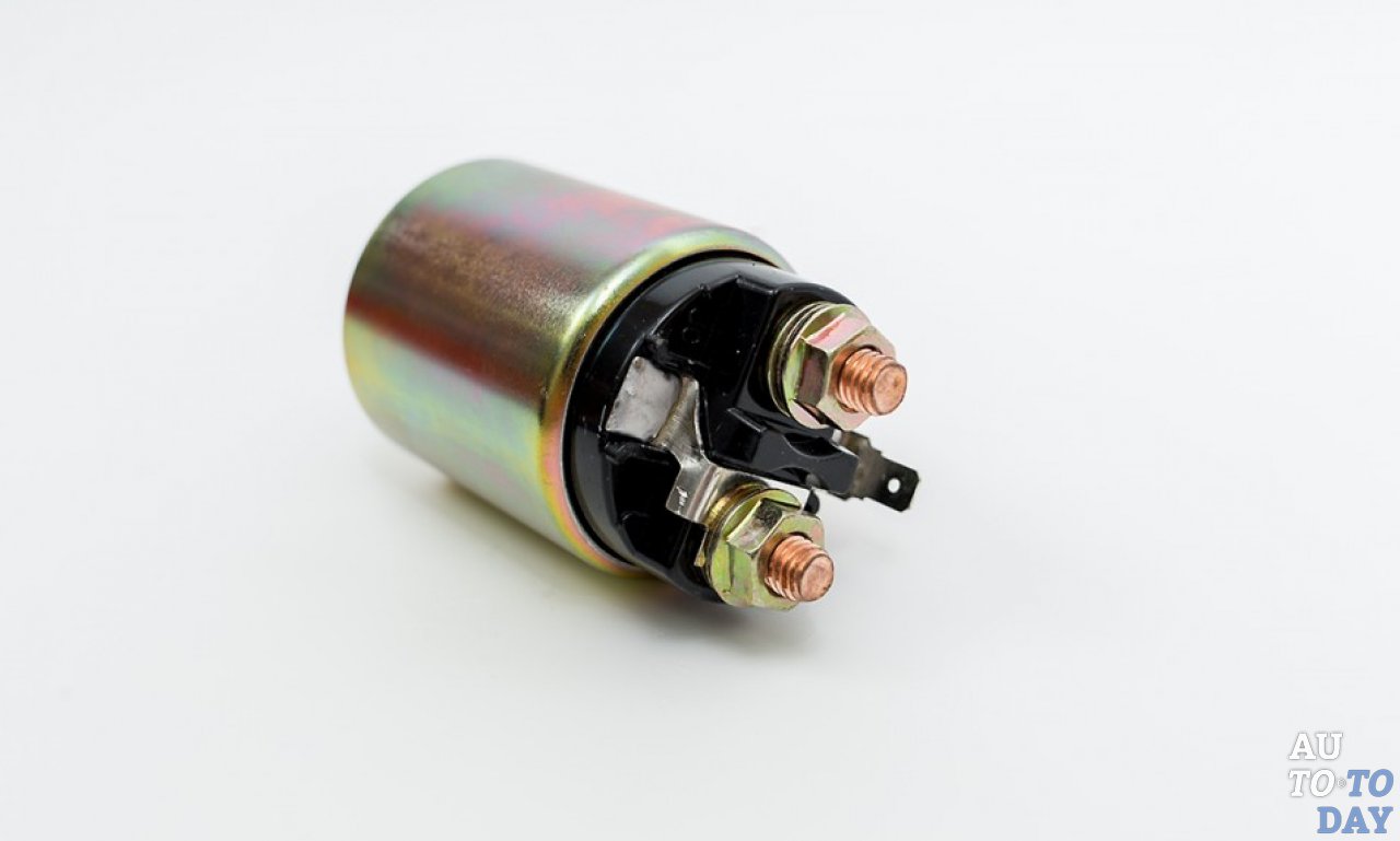 — Почему же это происходит? Втягивающее реле стартера оборудовано соленоидом, электромагнитной катушкой, а также мощной контактной группой, в состав которой входит медная шайба, а также и два медных болта. После того, как включите замок зажигания, на обмотку катушки направляется подача тока. Соленоид начинает движение и при этом он выдвигает приводную муфту. Шестерня муфты с венцом маховика входит в зацепление. Одновременно соленоид замыкает контакты, находящиеся в крышке реле, через них на обмотки стартера подается электроэнергия. Но если поверхность контактов покрыта оксидной пленкой, ток через них пройти не сможет, ведь оксид меди – это очень мощный диэлектрик.