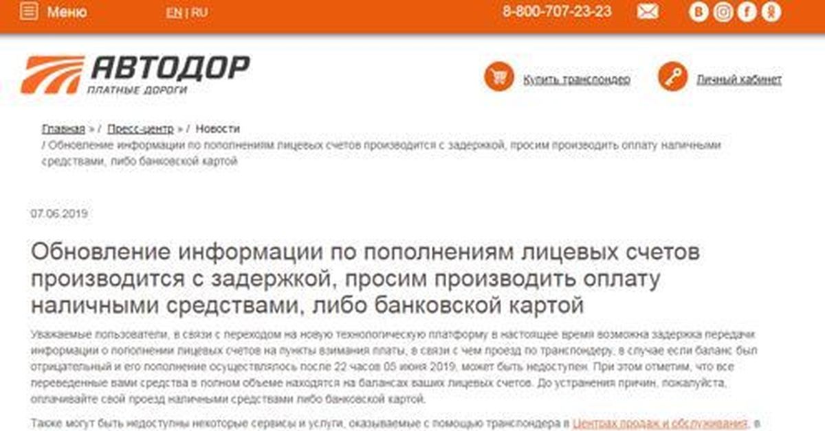 - Убедитесь в необходимом для поездки балансе средств на счете транспондера