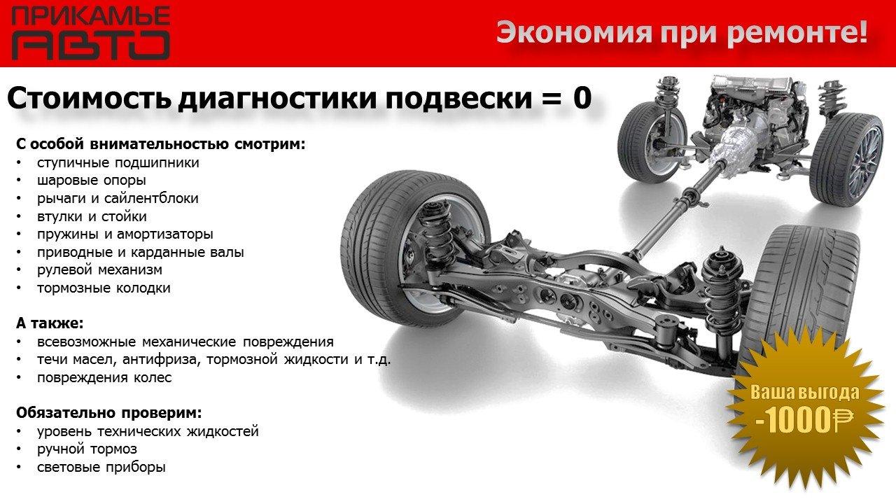 Диагностика ходовой части автомобиля – цена услуги включает в себя: