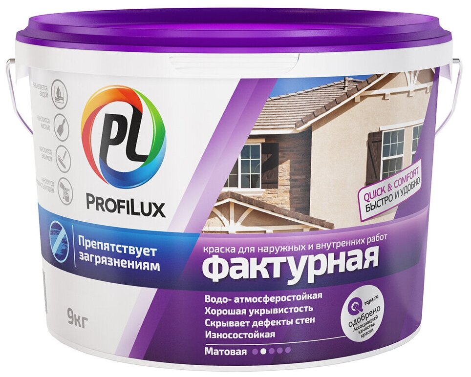 Акриловая фактурная краска Profilux предназначена для получения декоративного рельефного покрытия, для наружных и внутренних работ, применяется в качестве структурного кроющего кварцевого грунта для декоративных штукатурок. Хорошо наносится на бетонные, кирпичные, отштукатуренные и другие виды минеральных поверхностей. Покрытие подходит для защиты и оформления фасадов.