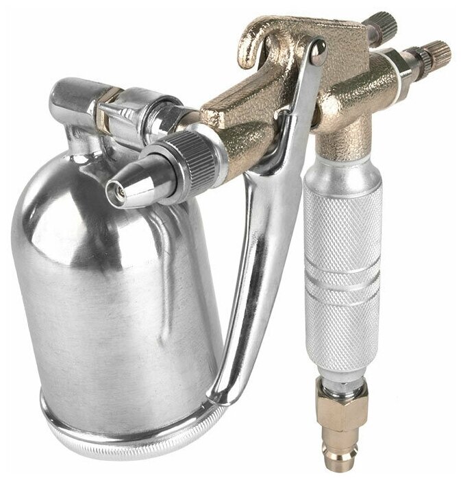 - Пистолеты и баки для этого типа устройств чаще производятся из металла – в основном, из алюминия.