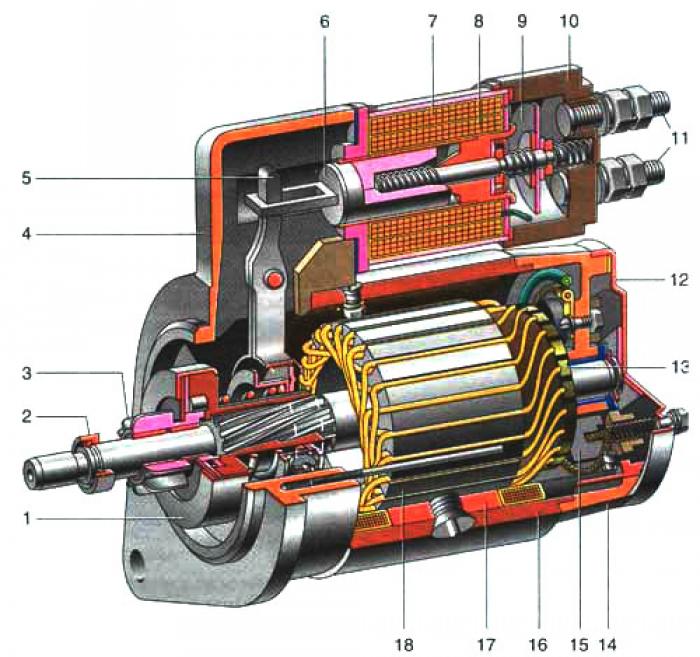 Устройство стартера включает в себя следующие основные составляющие: