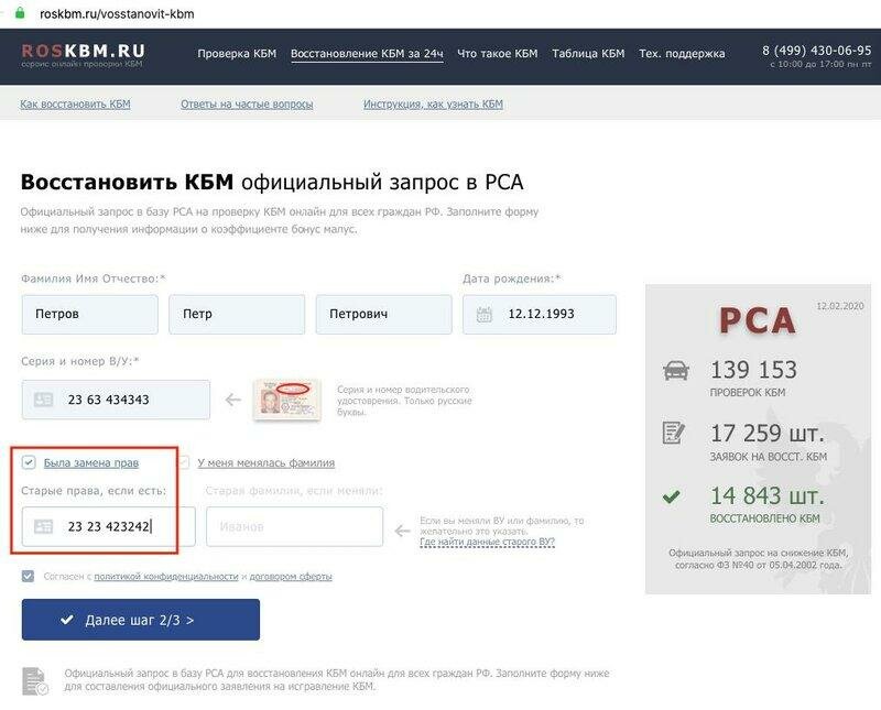 Первым этапом, чтобы восстановить КБМ, по базе РСА надо узнать самостоятельно свой коэффициент. Сервис бесплатный, в режиме онлайн на нём введите информацию о себе: ФИО, дату рождения и данные водительского удостоверения. После обработки выйдет информация обо всех изменениях показателя, по которым вы сможете отследить, где произошел сбой. Определив, в какой страховой компании ваш коэффициент завысили, вы сохраняете историю изменений вашего КБМ.