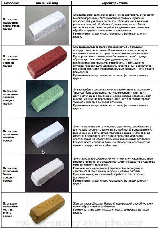 Ниже приведена таблица какая паста какой абразиности , для каких металлов подходит и т.п.