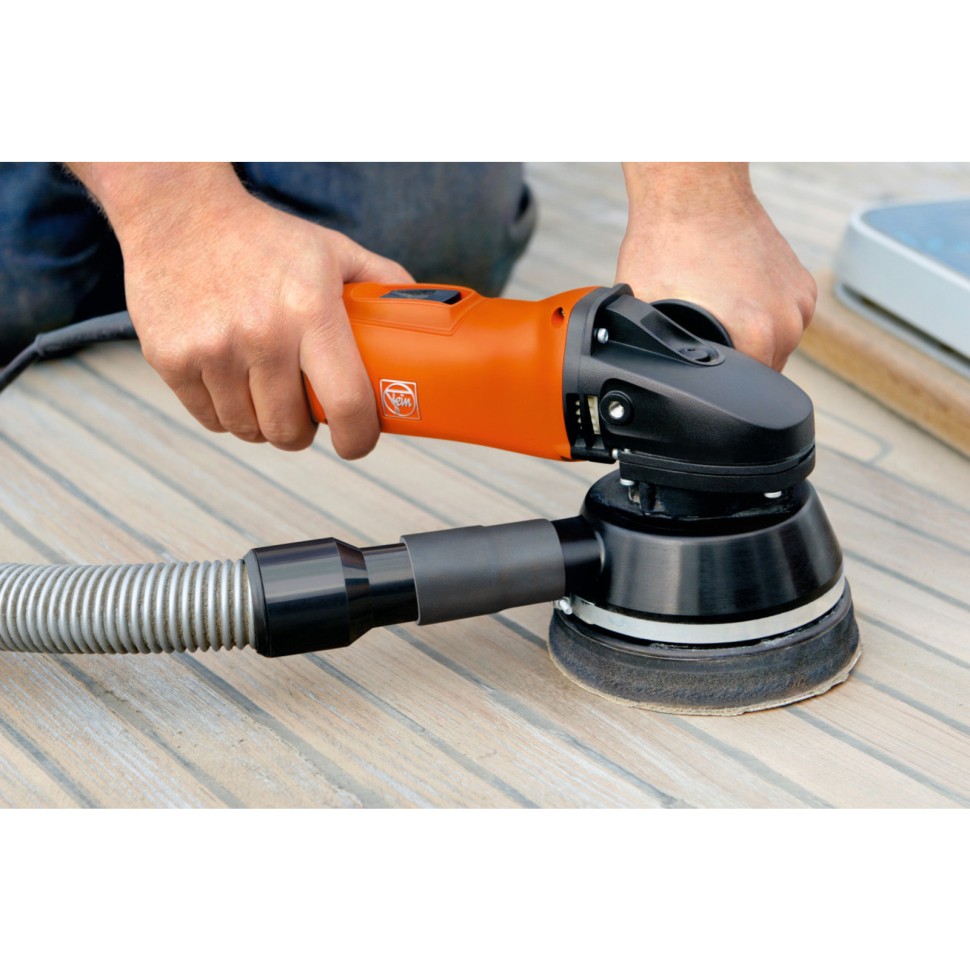 Большая часть эксцентриковых шлифовальных машин имеют функцию отвода пыли. Он может выполняться несколькими методами: через подошву, с помощью пылеотвода, по другому с помощью шланга и мешка для сбора пыли. Конечно модели, где конечно отсоединять пылесборник либо поменять его положение.
