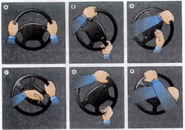 Постоянно перехватывайте руку, только достигая максимального поворота рулевого колеса. Для того чтобы вывернуть руль в обратную сторону используем такой же принцип перехватов.