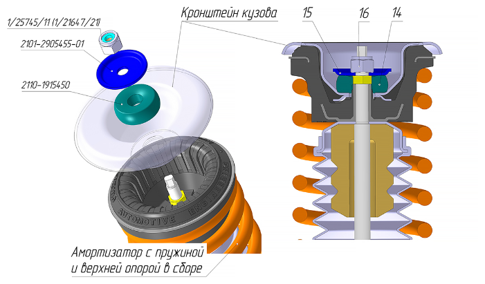 Из чего состоит передний амортизатор