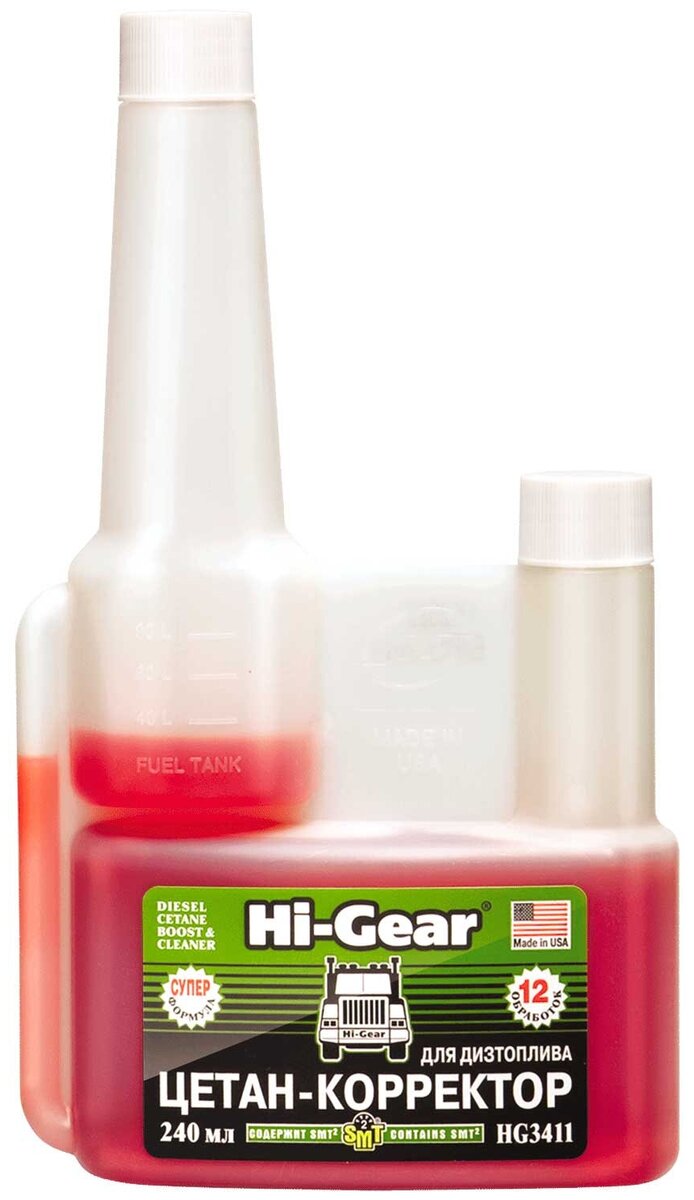 Кроме того, она очищает топливную систему автомобиля, эффективно удаляет ржавчину и нагар, а также прочие отложения и загрязнения. Присадка увеличивает ресурс мотора и его мощность. Обеспечивает силовому агрегату надёжную защиту от коррозии. Её необходимо заливать в бак перед заправкой топливом. На 75 литров дизеля хватает одного флакона средства, который имеет объём 250 мл.