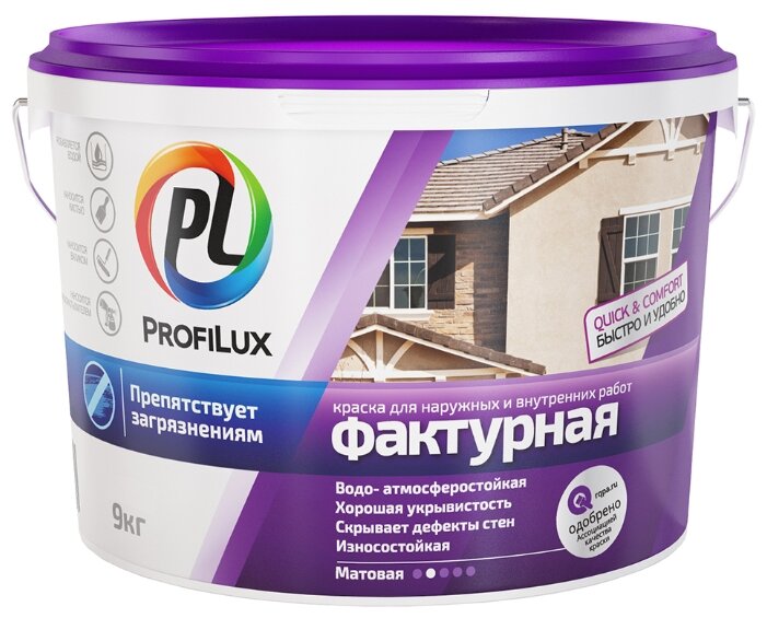 Акриловая фактурная краска Profilux предназначена для получения декоративного рельефного покрытия, для наружных и внутренних работ, применяется в качестве структурного кроющего кварцевого грунта для декоративных штукатурок. Хорошо наносится на бетонные, кирпичные, отштукатуренные и другие виды минеральных поверхностей. Покрытие подходит для защиты и оформления фасадов.