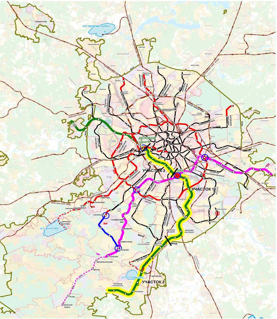 Но этого мало. Подземка буквально задыхается от наплыва пассажиров, толчеи на станциях и в вагонах; бывают сбои в движении. Поэтому и рассматривается проект строительства пяти линий: четырёх хордовых и одной периферийной кольцевой. На них выпустят десятивагонные поезда. Хорды должны миновать центр, а пересекаясь, образовать четырёхугольник — своего рода второе кольцо. Они соединят Митино с Бутовом, Химки с Люберцами, Мытищи с Внуковом и Балашиху с Бутовом.
