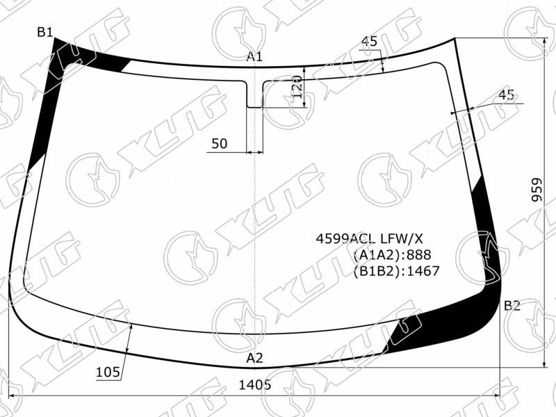 Предостережение: в данных, после которых в скобках указано буквенное обозначение (например: Верхняя длина (АB)) указывают размер стекольного проема, во всех остальных случаях – данные касаются размеров стекла.