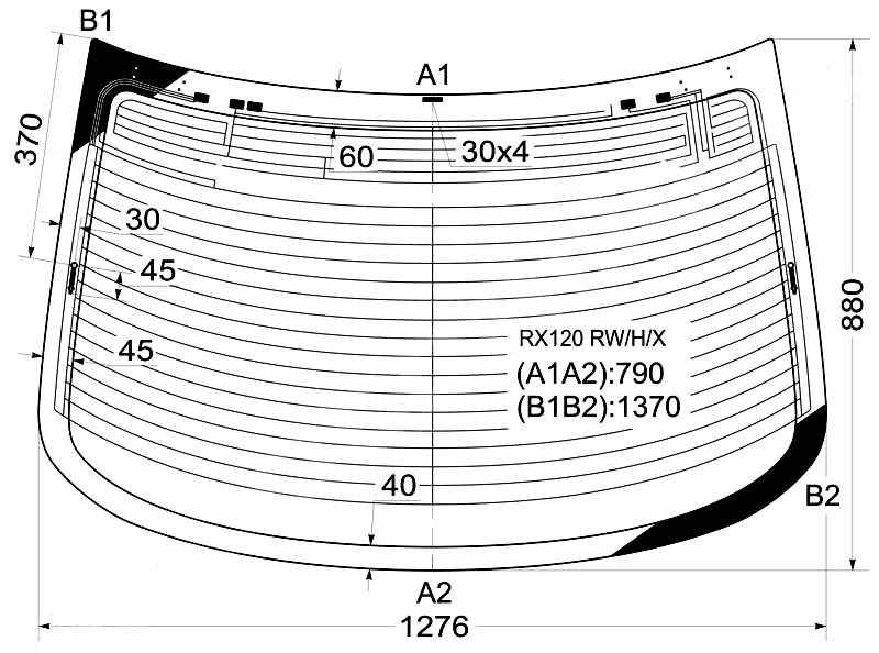 | Чертеж Общий условный чертеж задних стекол | Длина min (мм) Минимальная длина заднего стекла для разных модификаций VAZ 2110. ![]() | ||