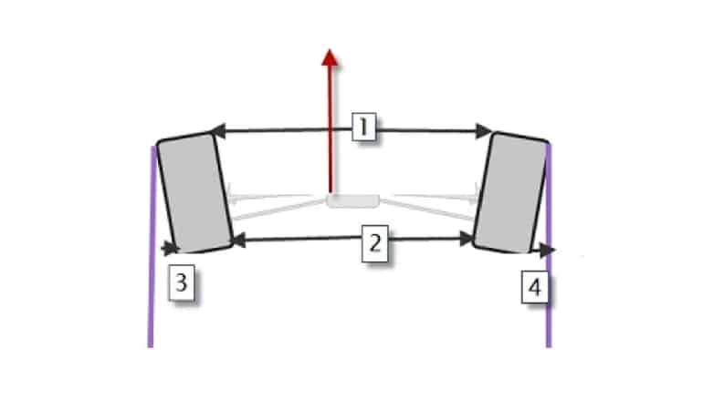 - Переместить транспортное средство так, чтобы колеса развернулись на 90 градусов. Повторить измерения.