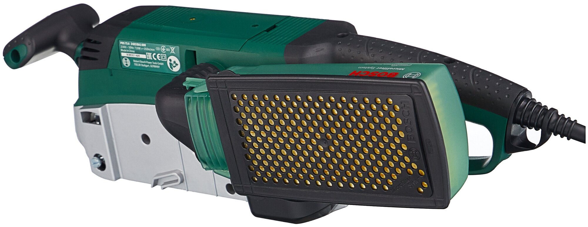 - Большинство современных шлифмашин оборудовано системой пылеудаления: подключается строительный пылесос через специальный патрубок или в комплекте есть мешок для сбора пыли. Это делает процесс работы чище, сам инструмент контролируется лучше, а расход абразивной оснастки снижается.
