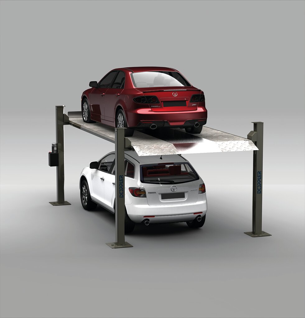 Двухуровневая система головоломок, также называемая автоматическим подъемником и системой раздвижной парковки. Эта система имеет два уровня парковки. Его конструкция позволяет использовать все въезды и выезды с парковки на уровне земли.