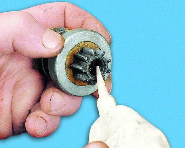 Смазывать необходимо не только втулки, но и стартерный вал, чтобы не затруднять продольный ход обгонной муфты. А важно это в случае клина муфты с шестернёй, ведь есть вероятность поломки зубьев. Определить это можно руководствуясь характерным звуком.