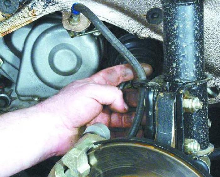 2. Проводим демонтаж шлангов, отвечающих за подачу тормозной жидкости. Если есть возможность не отсоединять от суппортов, значит ею нужно воспользоваться, иначе придется еще заниматься прокачкой тормозной системы.