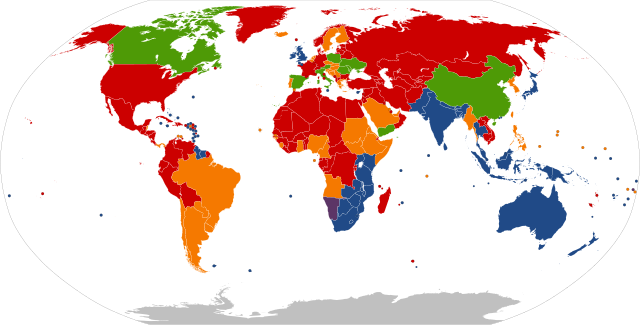 Хотя в большинстве стран мира правостороннее движение, не существует глобальной системы, определяющей, по какой стороне дороги едут водители.В целом 171 страна и территория движутся по правой стороне дороги, а 77 стран и территорий — по левой.