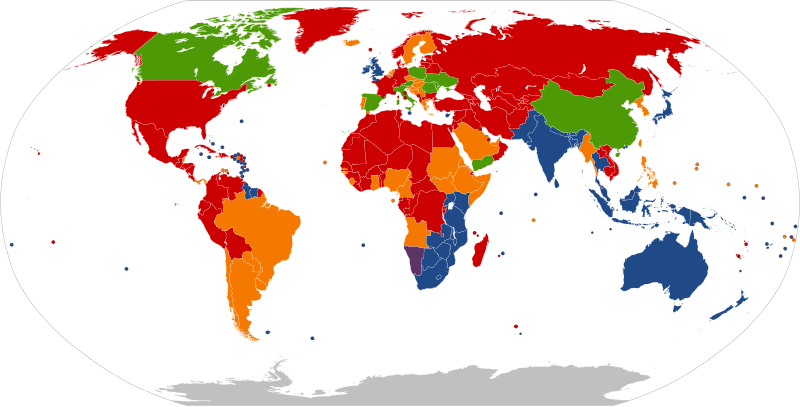 Щелкните здесь, чтобы увидеть карту стран с левосторонним движением автомобилей и правым.