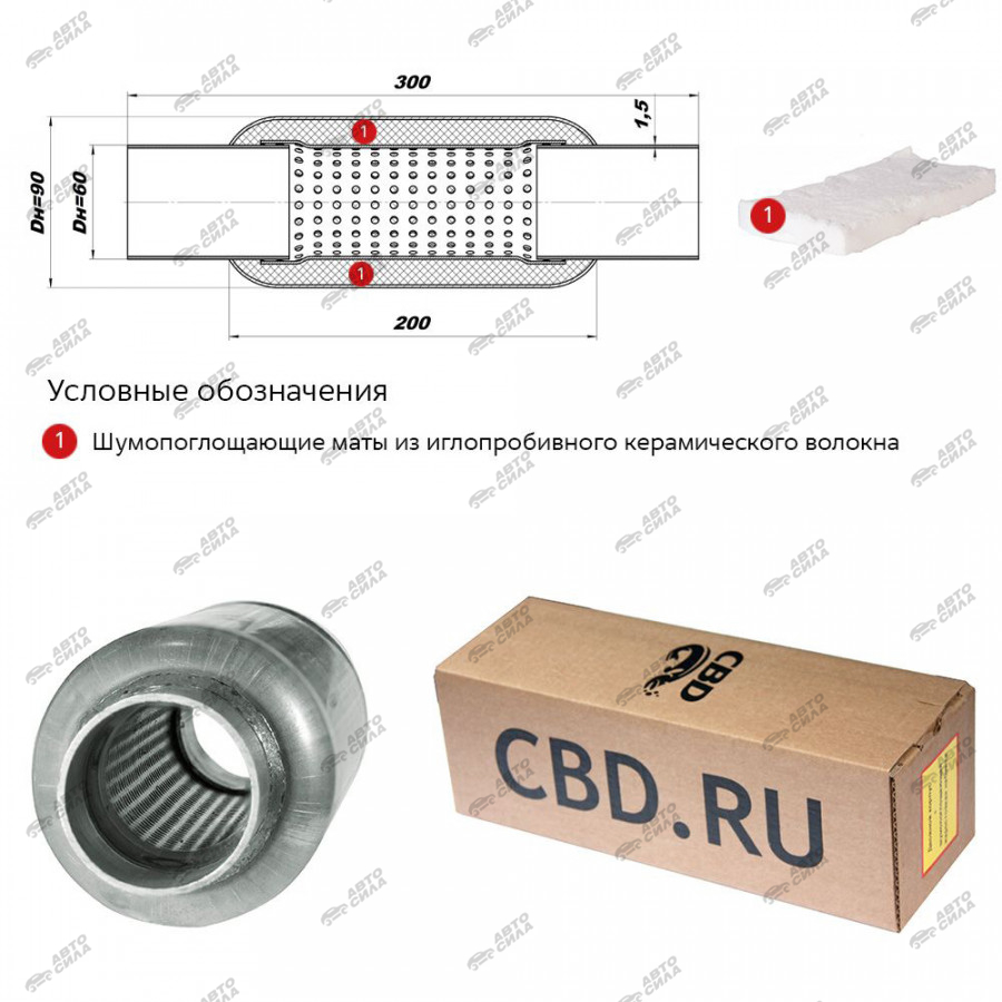 Размер корпуса и длина. Если деталь круглая, то это диаметр, если деталь овальная, то ширину и высоту детали. Длина меряется до места приваривания катализатора к трубе.