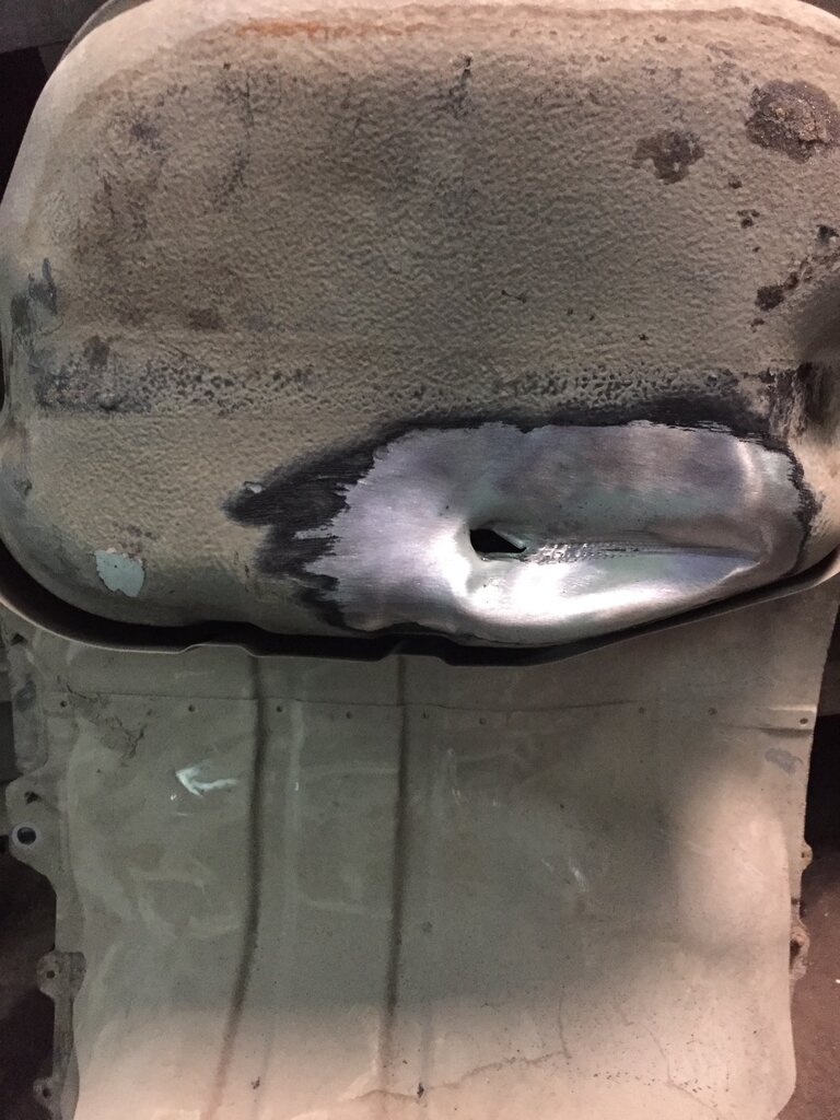 При небольших размерах рваного или колотого отверстия снимать ёмкость под бензин с автомобиля совсем не обязательно.