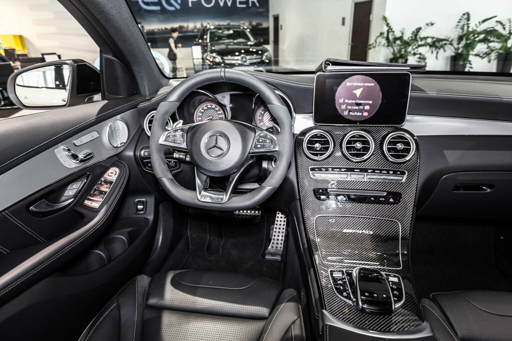 Фотография сотрудников Марка Кеннеди / Черный интерьер с металлическими вставками придает Mercedes-Benz AMG GLC 63 S Coupe 2020 спортивный вид.ЧТО НАМ НРАВИТСЯ