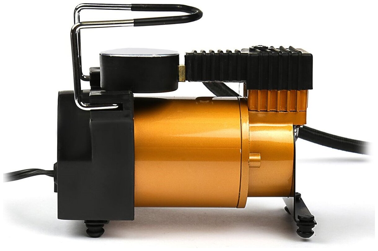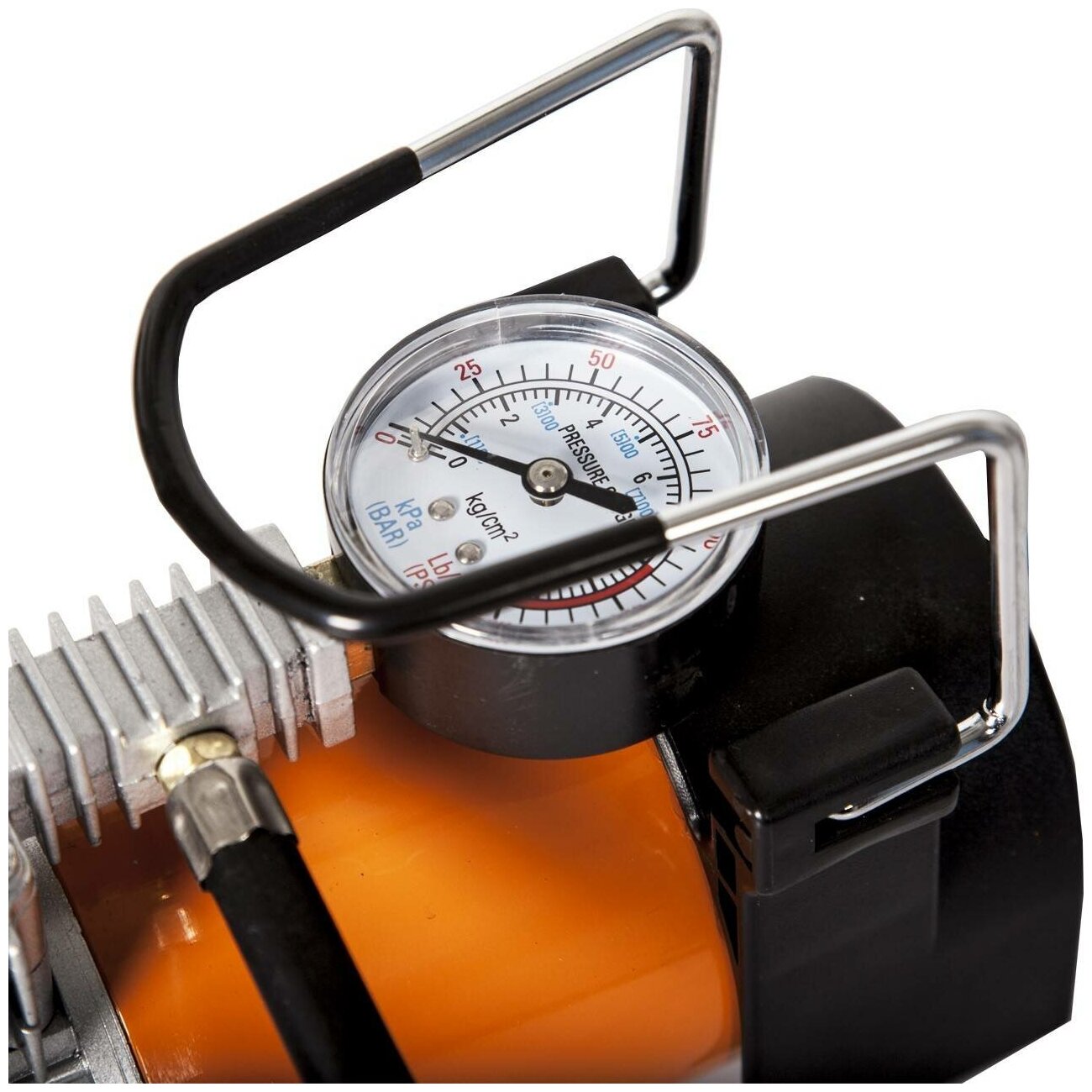 Эта модель устройства для накачивания шин имеет расширенные функции. К ним относятся аналоговый манометр, диапазон выбора давления и время непрерывной работы 30 минут при давлении 35 фунтов на квадратный дюйм. Кроме того, черный тканый шланг отличается прочностью и имеет длину 80 см.
