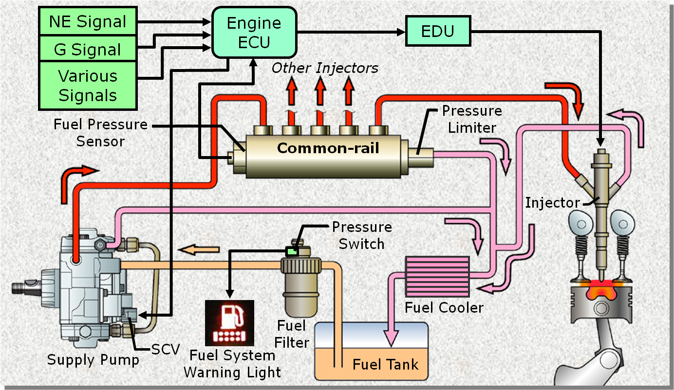 Конструктивно система впрыска Common Rail составляет контур высокого давления топливной системы классического дизельного двигателя. В системе используется непосредственный впрыск топлива, т.е. дизельное топливо впрыскивается непосредственно в камеру сгорания.